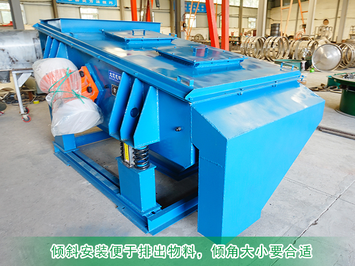 一般情況下,直線振動篩是傾斜安裝的,以便于排出篩上物料。傾角大小要合適,傾角過小,物料在篩面上運動速度太慢,雖然篩分效率高,但直線篩的生產率減少;反之,傾角太大,物料排出太快,篩分效率降低。故篩面的傾角要適當。