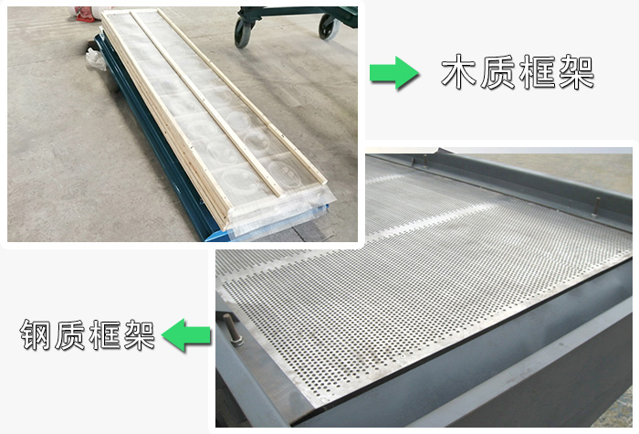 1、產能低時直線振動篩的框架可以選擇木質框架,產能高時就需要選擇鋼質框架了。
