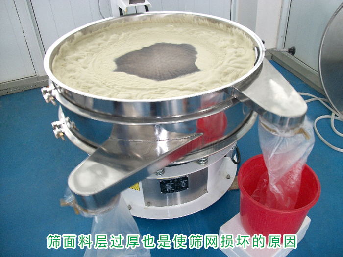 投料速度要均勻恒定,次投料量過大,篩面一次承重過大,篩網會因突然間沖擊過大導致疲勞,從而影響篩網使用壽命。