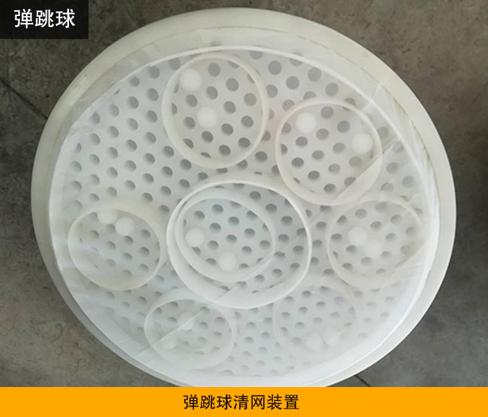 彈跳球清網(wǎng)裝置是為常見的清網(wǎng)裝置。其形狀為圓形,材質(zhì)可分為橡膠材質(zhì)與硅膠材質(zhì)兩種。其工作原理是均勻的分布在托球板上,一般十公分內(nèi)分布5-8個。篩機在振動篩分的同時彈跳球也隨之跳躍擊打篩網(wǎng),從而起到清網(wǎng)的目的,常見的使用機型有旋振篩。