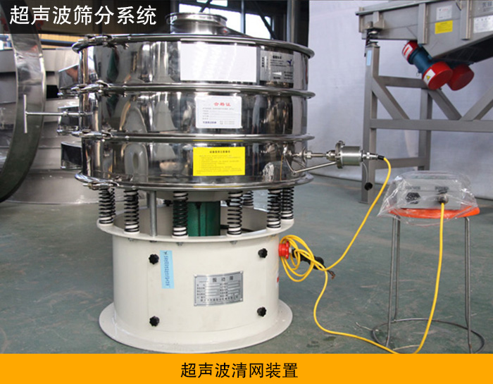 該裝置是利用超聲振動波對篩網(wǎng)進行清網(wǎng)工作。其主要組成部件有超聲波電源、換能器與超聲波網(wǎng)架組成。其原理是通過超聲波電源將常規(guī)用電轉(zhuǎn)換為18KHZ高頻電能,通過換能器作用在網(wǎng)架上,從而解決高精細(xì)物料的清網(wǎng)與高效篩分工作。該裝置多用于振動篩分機中,根據(jù)需要也可改裝后用于直線篩或搖擺篩中。